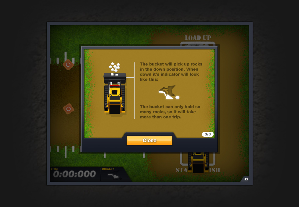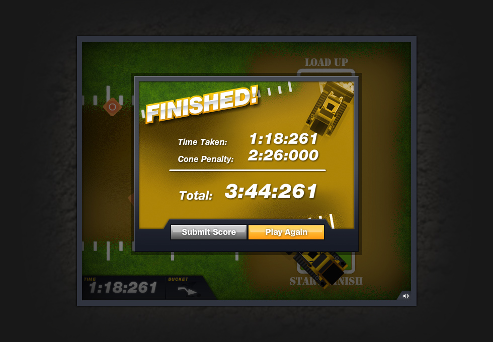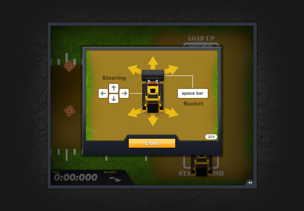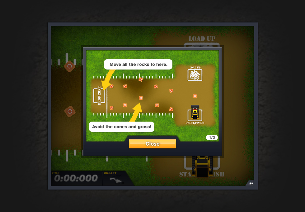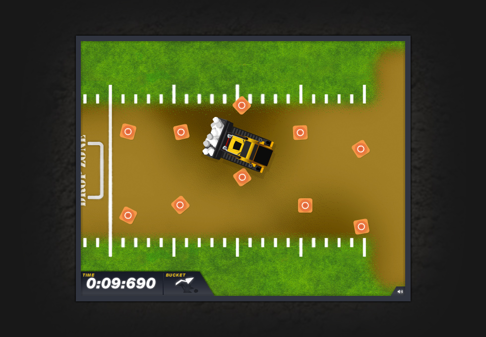 Vermeer wanted an online game that mimicked an activity at their trade show. The game is to move a pile of rocks from one point, down the field of obstacles to a drop-off point and race back to the starting point all while racing the clock. In-person, this showed off the maneuverability of their tracked hauler. Online, it turned into an inter-office rivalry.